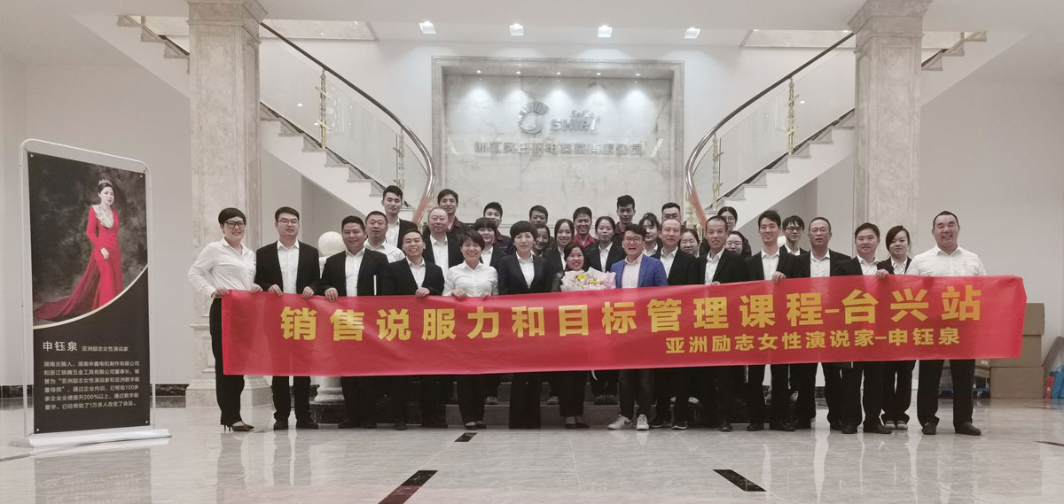 2019年11月07日是一個(gè)值得紀(jì)念的日子,在這一天臺(tái)興機(jī)電客戶(hù)-湖南申鑫電機(jī)制造有限公司、浙江鐵騰五金工具有限公司董事長(zhǎng),被譽(yù)為“亞洲勵(lì)志女性演說(shuō)家和亞洲數(shù)字能量導(dǎo)師”申鈺泉女士受臺(tái)興總經(jīng)理盛情邀請(qǐng),蒞臨臺(tái)興機(jī)電科技有限公司,對(duì)臺(tái)興機(jī)電科技有限公司管理層進(jìn)行內(nèi)訓(xùn)。