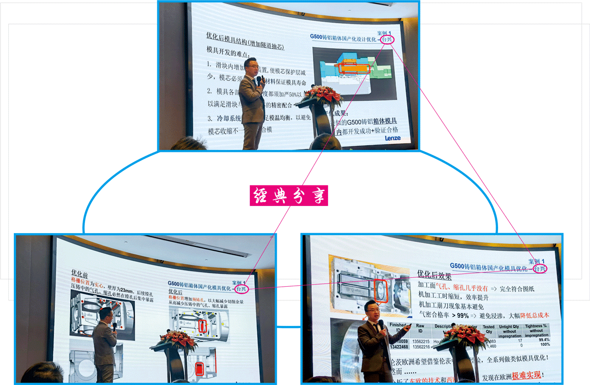 接著,主持人就2020年度中國區(qū)域采購業(yè)務提出觀點:作為中國的戰(zhàn)略供應商,一定要具備出色的技術和穩(wěn)定的質量,具備高效的配合和靈活的產(chǎn)能。為此,主持人拿出與我司合作的“G500鑄鋁箱體國產(chǎn)化模具優(yōu)化項目”作為經(jīng)典案例進行了重點介紹,介紹完之后還邀請章總起立示意,與大家相識。